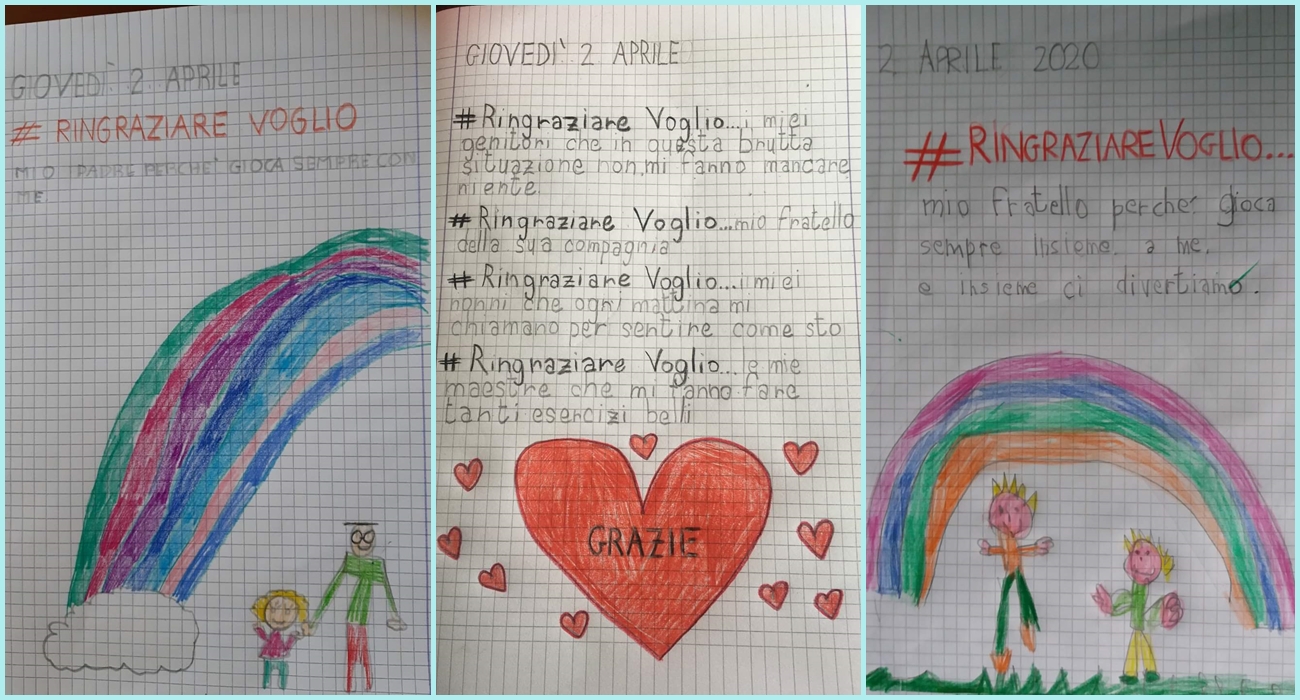 #RingraziareVoglio Stampa Email Dettagli Categoria: News ed eventi Pubblicato: 02 Aprile 2020 Visite: 3092 Docenti Genitori Alunni In questa sezione è possibile visualizzare i lavori prodotti dalle bambine e dai bambini delle classi prime dell'Istituto che hanno partecipato all'iniziativa #RingraziareVoglio. Allegati: FileAutoreDimensione del File ringraziare voglio Ist.Com.pdfLauraT417 kB