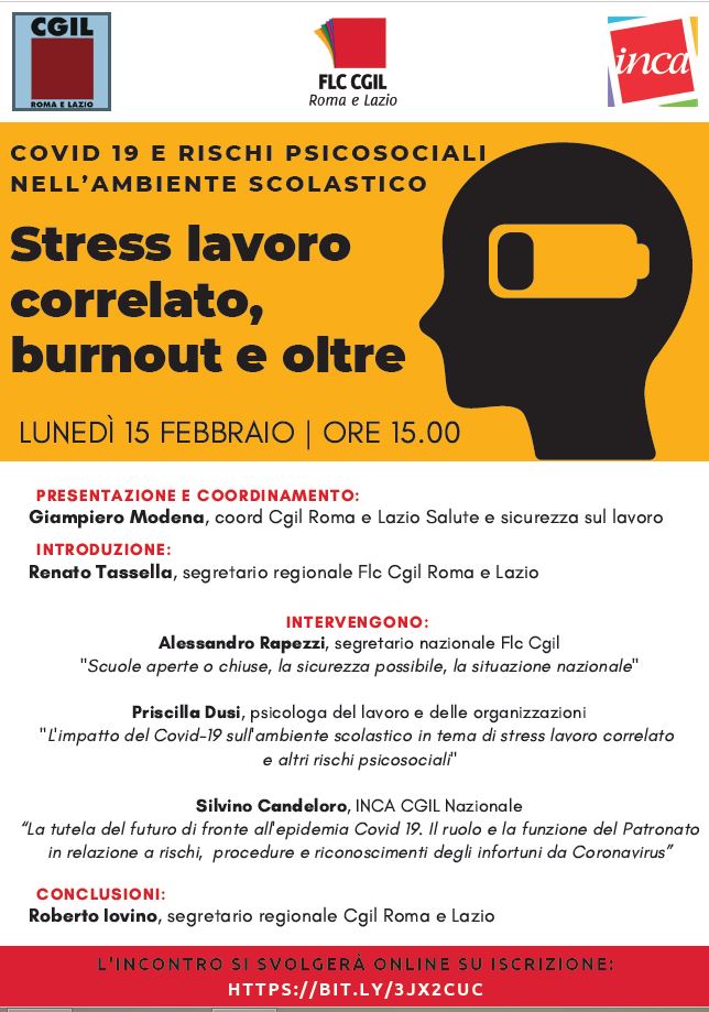 Incontro 15-02-2021 - "Stress lavoro correlato, burnout e oltre" Stampa Email Dettagli Categoria: Non categorizzato Pubblicato: 11 Febbraio 2021 Visite: 2526 Docenti ATA Bacheca Sindacale Allegati: FileAutoreDimensione del File burn out.pdfLauraT187 kB