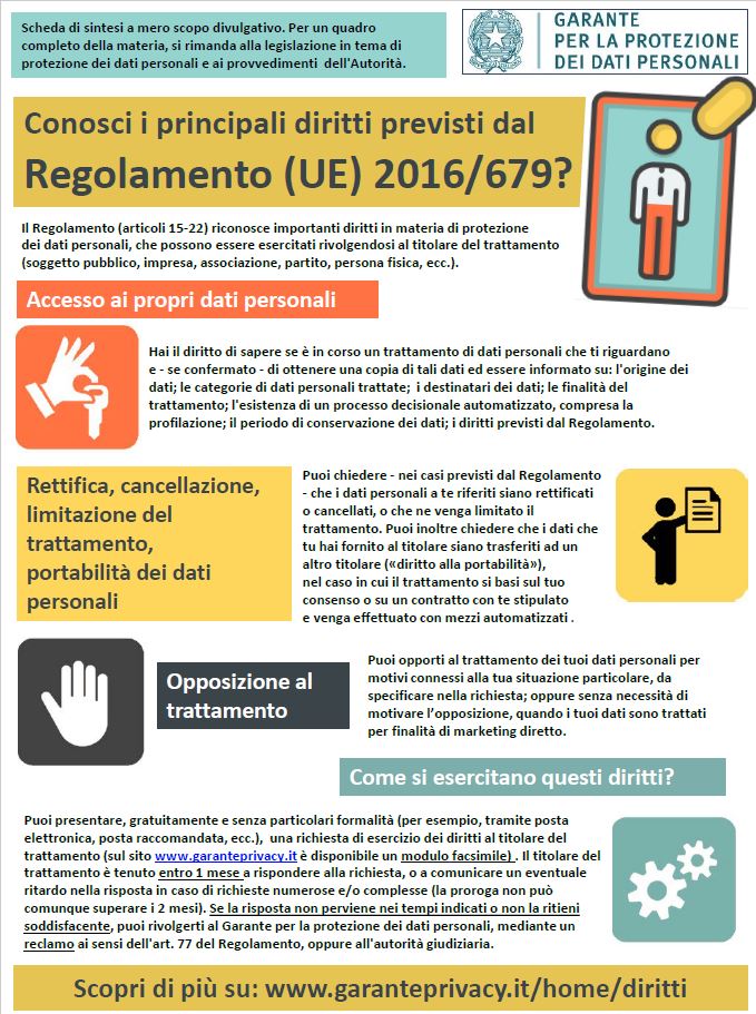 - la Circolare n.111 avente per oggetto: Diritti previsti dal regolamento UE 2016 679;