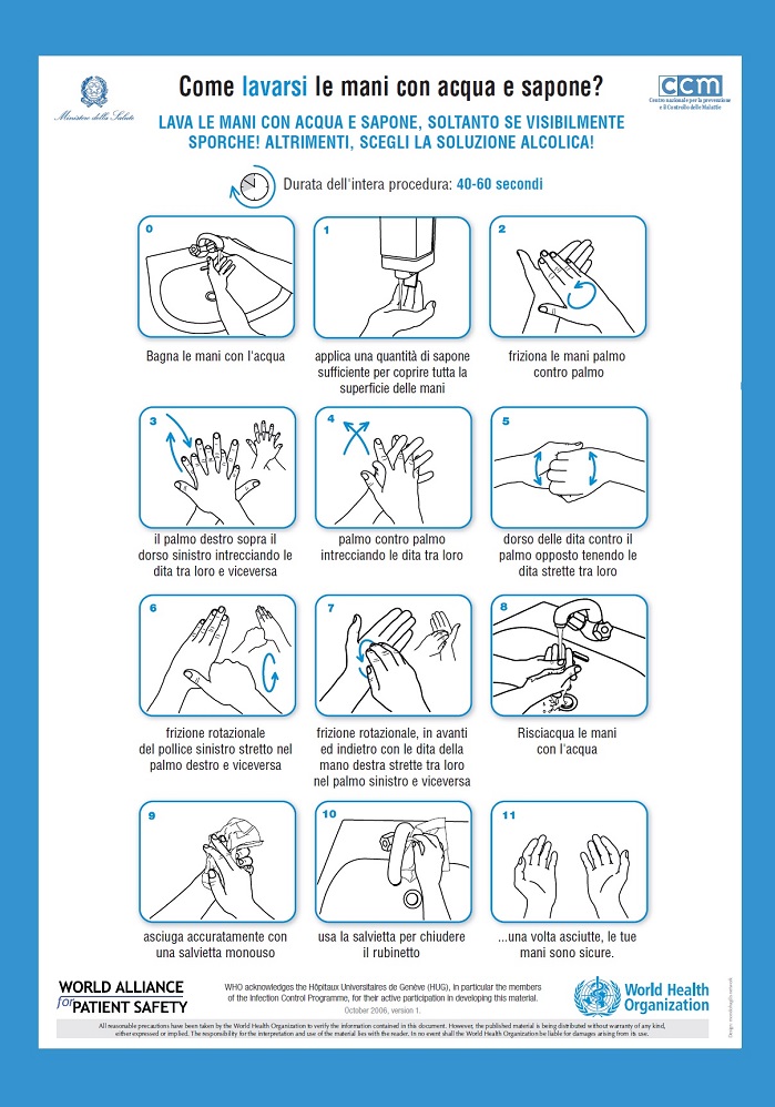 - Allegato D: Informativa del Ministero della Salute "Come lavarsi le mani con acqua e sapone?".