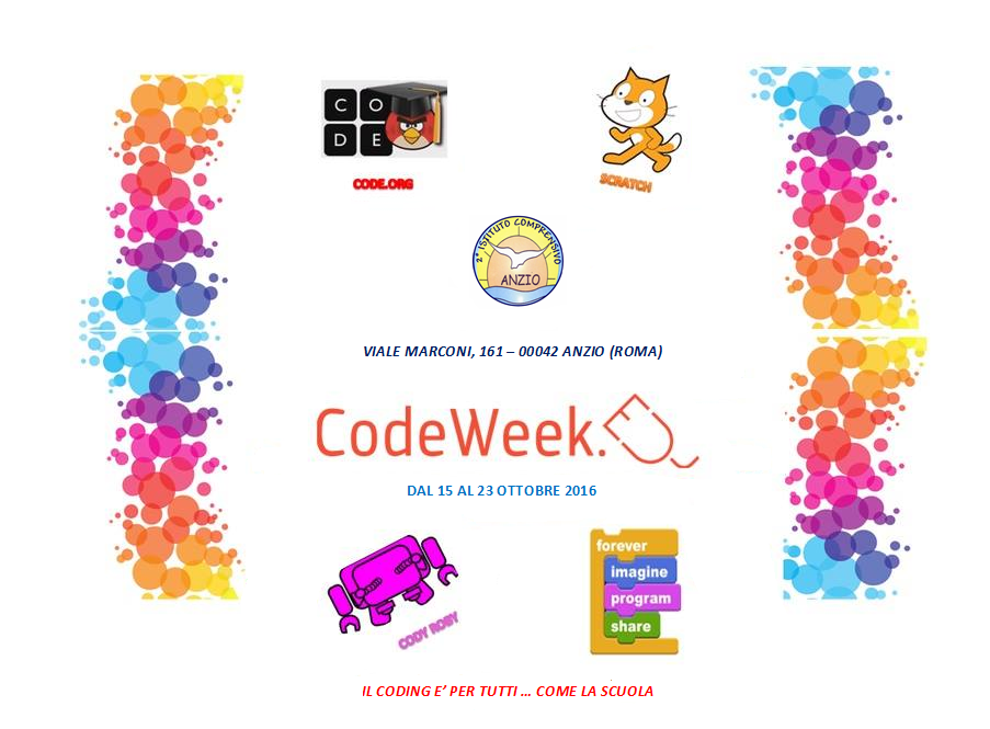 Code Week 2016 Stampa Email Dettagli Categoria: Non categorizzato Pubblicato: 14 Ottobre 2016 Visite: 9390 L'ISTITUTO COMPRENSIVO ANZIO II PARTECIPA ALLA CODE WEEK 2016