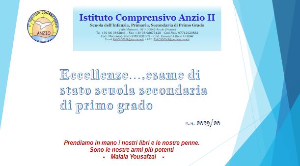 Eccellenze: Esame di Stato Scuola Secondaria di 1° Grado a.s. 19-20 Stampa Email Dettagli Categoria: Non categorizzato Pubblicato: 08 Luglio 2020 Visite: 3386