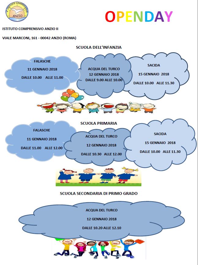 Locandina Open Day nuove date Stampa Email Dettagli Categoria: News ed eventi Pubblicato: 07 Dicembre 2017 Visite: 810 Docenti Genitori Alunni ATA Allegati: FileAutoreDimensione del File locandina OPEN DAY_ nuove date.pdfLauraT378 kB