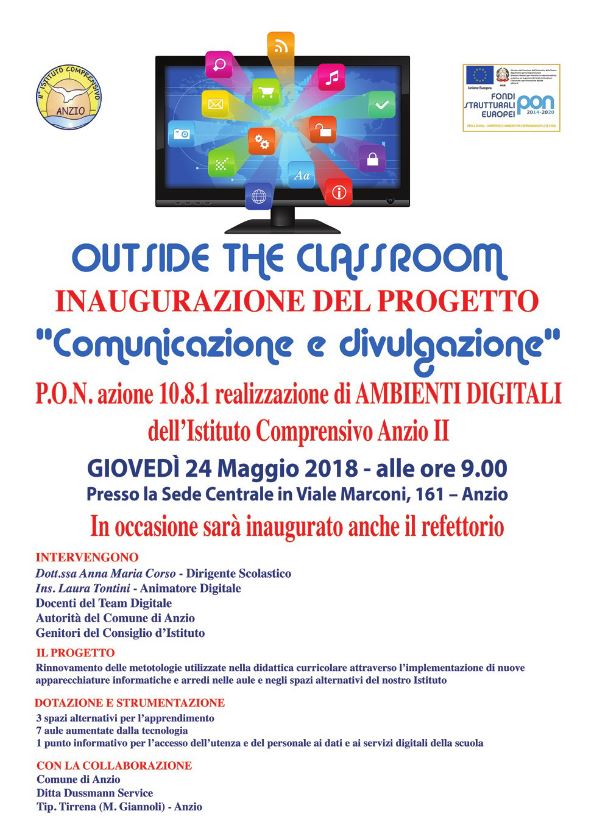 Locandina evento "Outside the classroom" Stampa Email Dettagli Categoria: News ed eventi Pubblicato: 15 Maggio 2018 Visite: 920 Docenti Genitori Alunni ATA