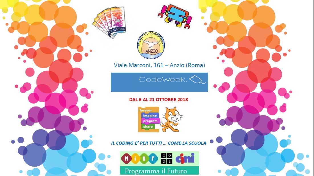 Code Week 2018 Stampa Email Dettagli Categoria: News ed eventi Pubblicato: 05 Ottobre 2018 Visite: 715 Docenti Genitori Alunni L'ISTITUTO COMPRENSIVO ANZIO II PARTECIPA ALLA CODE WEEK 2018 Allegati: FileAutoreDimensione del File Locandina_codeweek_2018.pdfLauraT860 kB