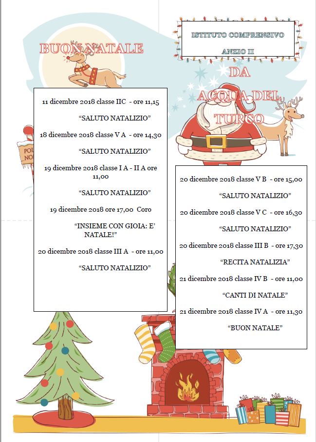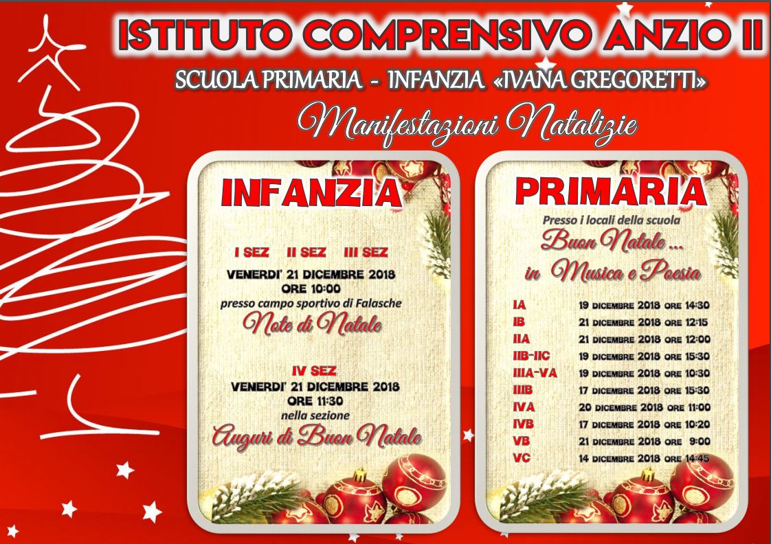 Manifestazioni di Natale 2018 Stampa Email Dettagli Categoria: News ed eventi Pubblicato: 13 Dicembre 2018 Visite: 754 Docenti Genitori Alunni ATA