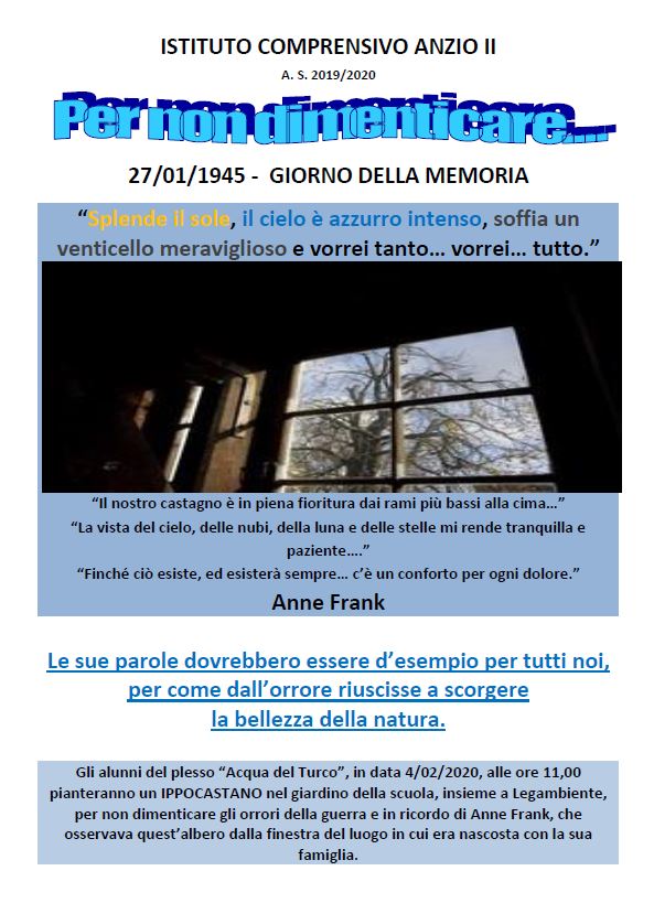 Giorno della memoria Stampa Email Dettagli Categoria: News ed eventi Pubblicato: 25 Gennaio 2020 Visite: 419 Docenti Genitori Alunni