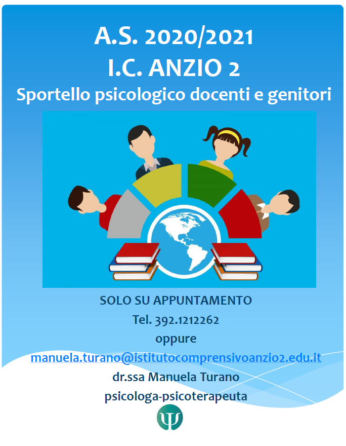 Sportello di ascolto e consulenza psicologica 2020-2021 Stampa Email Dettagli Categoria: News ed eventi Pubblicato: 06 Gennaio 2021 Visite: 520 Docenti Genitori Allegati: FileAutoreDimensione del File locandina sportello psi icanzio2_as_2020_2021 mad.pdfLauraT120 kB