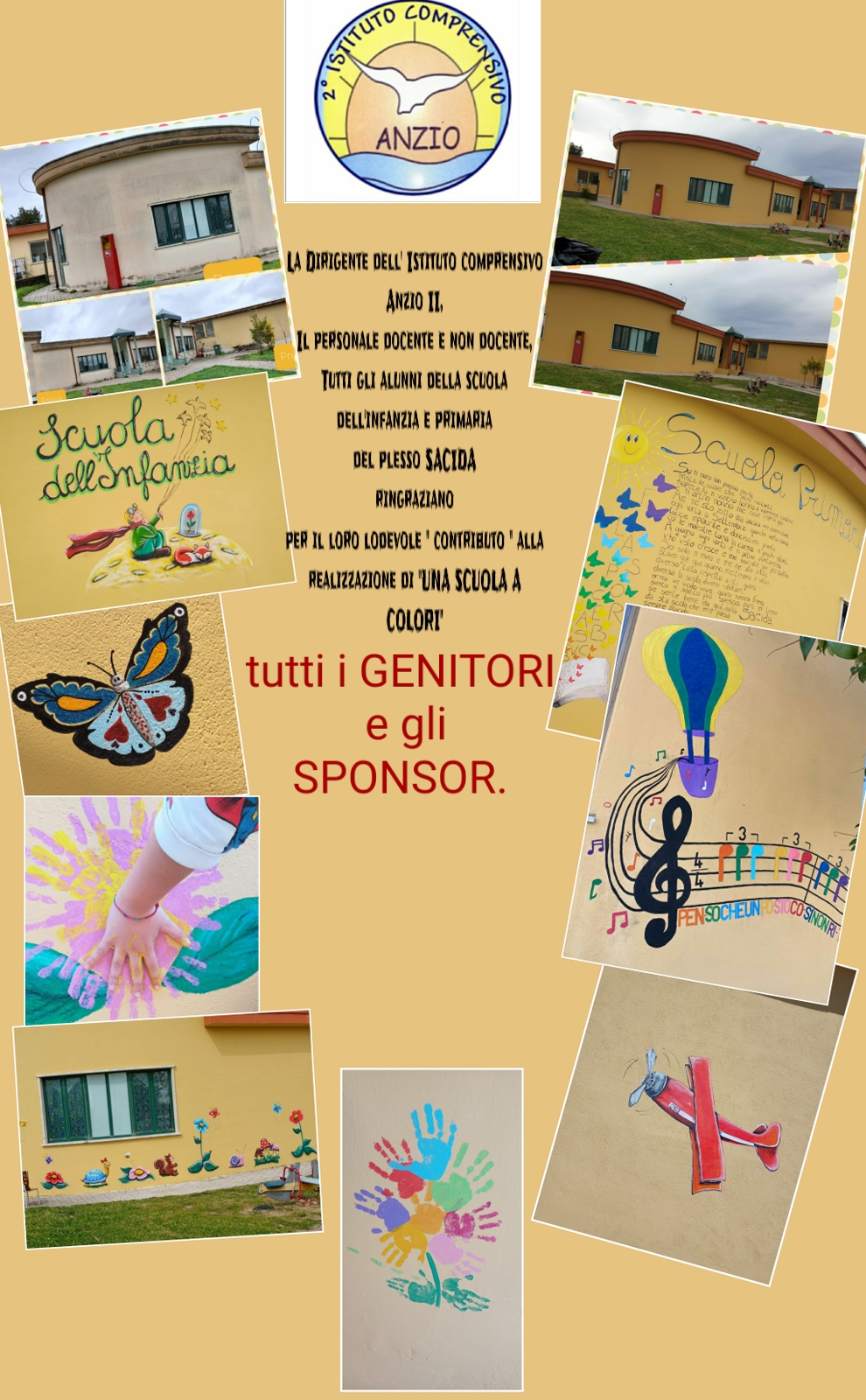 Il giorno 28 maggio alle ore 10.00 presso la scuola dell'infanzia e primaria di Sacida in via Cipriani,  tutta la comunità scolastica  festeggerà la conclusione del progetto “Una Scuola a colori” che ha visto impegnati docenti, personale scolastico, alunni, genitori e sponsor nella riqualificazione  giocosa e colorata degli spazi esterni. Lo spirito del progetto risponde alla mission dell’Istituto Comprensivo Anzio II ovvero “per fare un bambino ci vuole un intero villaggio” nella certezza  che il tempo perduto per la “nostra rosa ha reso la nostra rosa così importante”. La dirigente scolastica ringrazia  di cuore tutti coloro che hanno sostenuto anche solo moralmente questa inziativa perchè  ha reso ancora più forti la comunità scolastica e il senso civico di rispetto delle cose comuni.