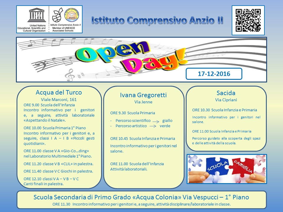 Open Day_old Stampa Email Dettagli Categoria: News ed eventi Pubblicato: 08 Dicembre 2016 Visite: 872 Docenti Genitori Alunni ATA In allegato è possibile consultare e scaricare la locandina delle attività relative all'Open Day del 17-12-2016. Allegati: FileAutoreDimensione del File Locandina Open Day 2016.pdfLauraT425 kB